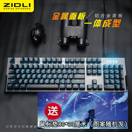 磁动力ZIDLI机械键盘光轴有线金属网咖电竞游戏LOL吃鸡CF全键无冲