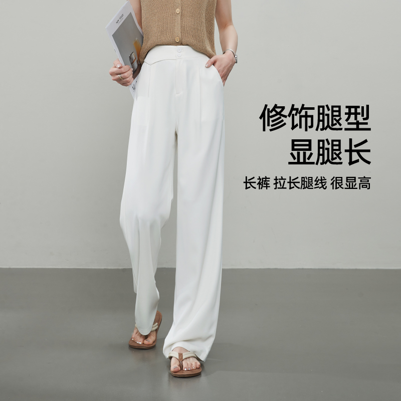 逸阳冰丝直筒裤女2025年夏季薄款垂感显瘦宽松西装阔腿休闲裤白色