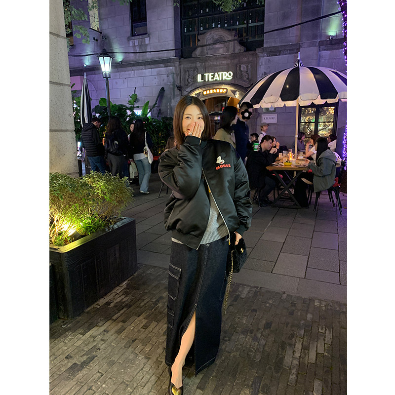 落落狷介 黑色棒球服女2025年新款设计感秋冬独特超好看外套夹棉