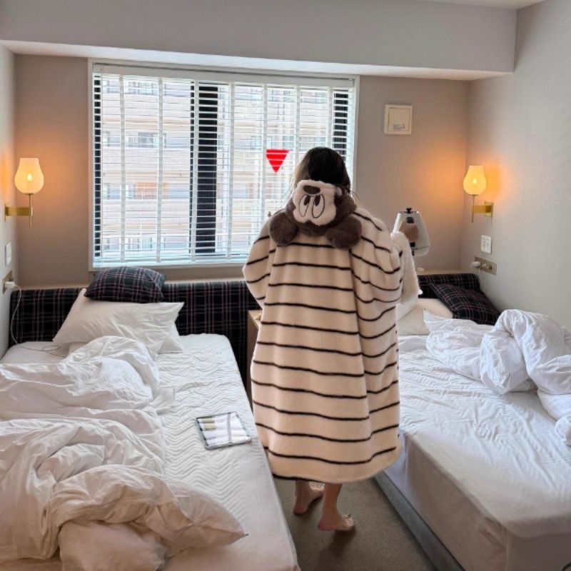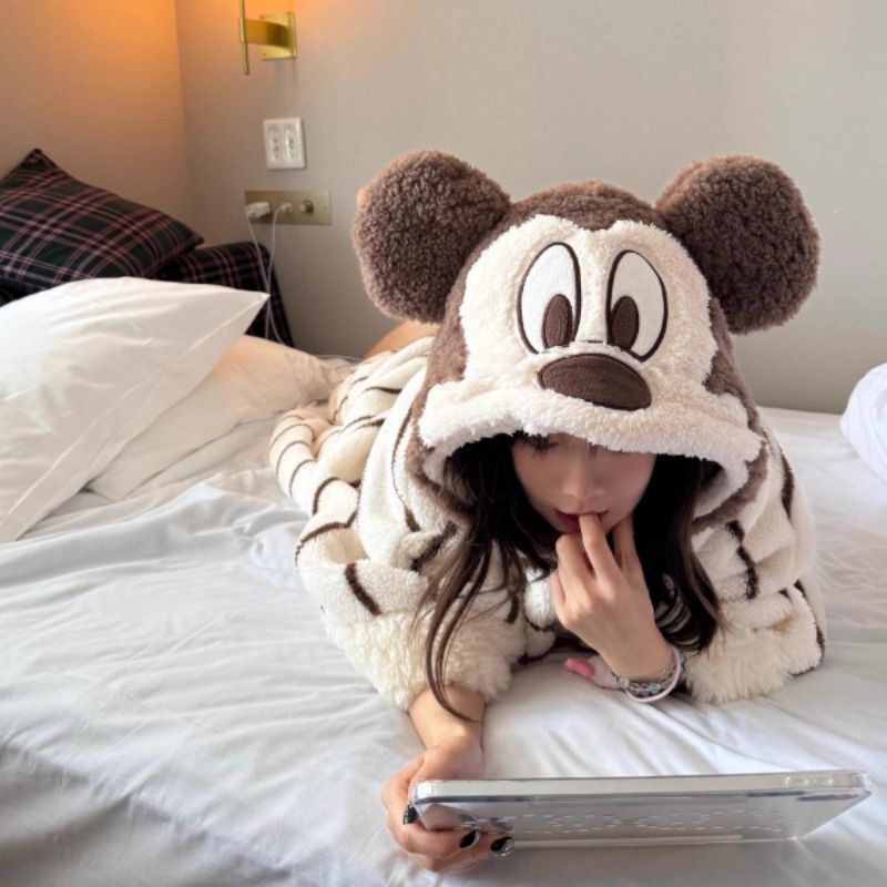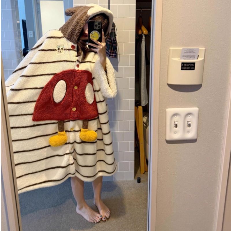 珊瑚绒斗篷睡袍女款秋冬季加厚加绒米奇睡衣可外穿冬天家居服夹棉