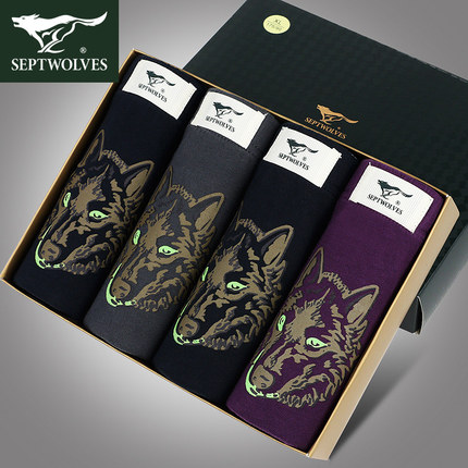 七匹狼男士内裤纯棉裤衩男生透气100%全棉三角裤男款抗菌裤头短裤