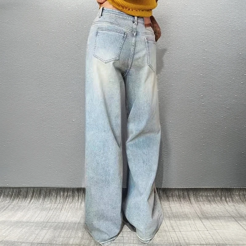 重工牛仔裤女高腰显瘦宽松阔腿裤