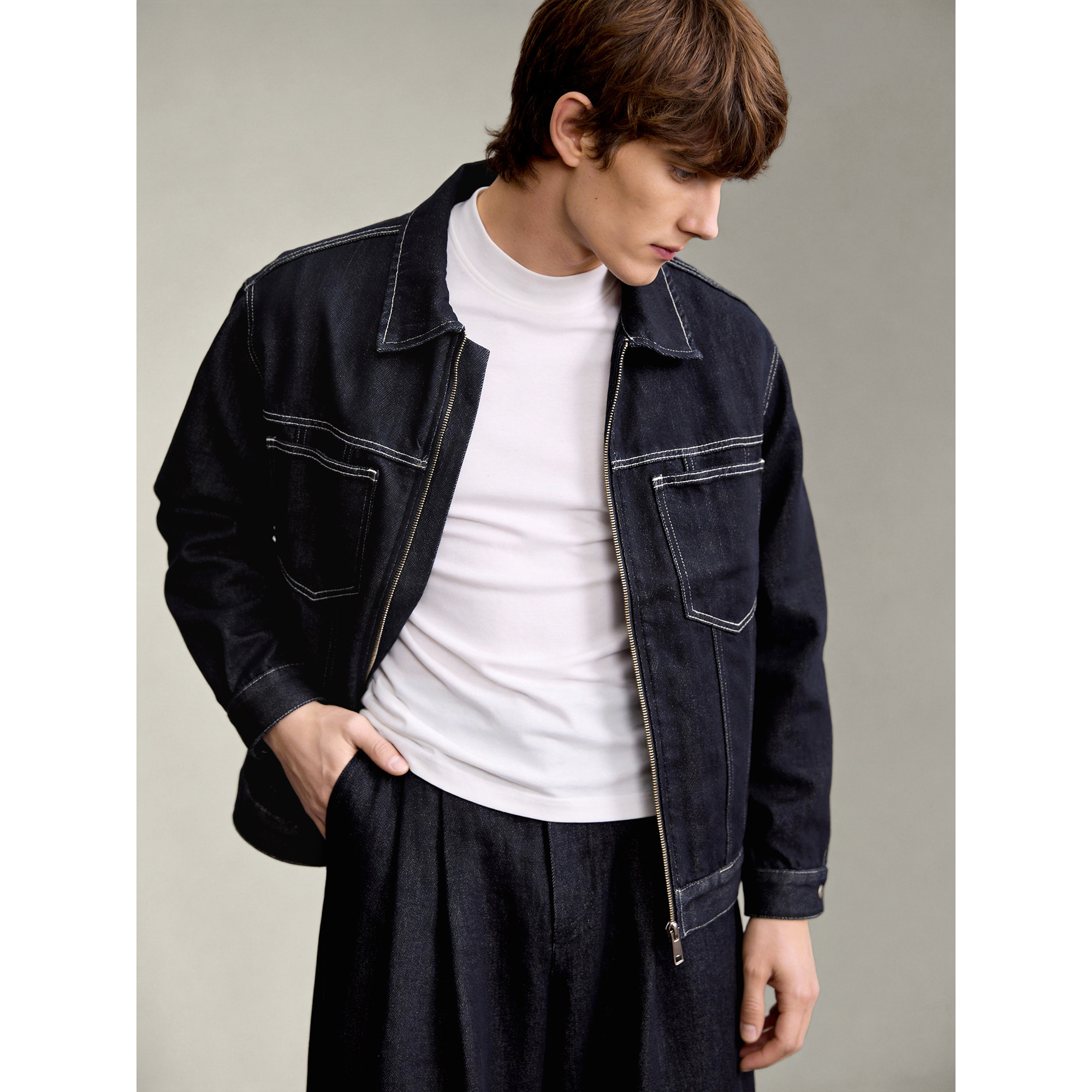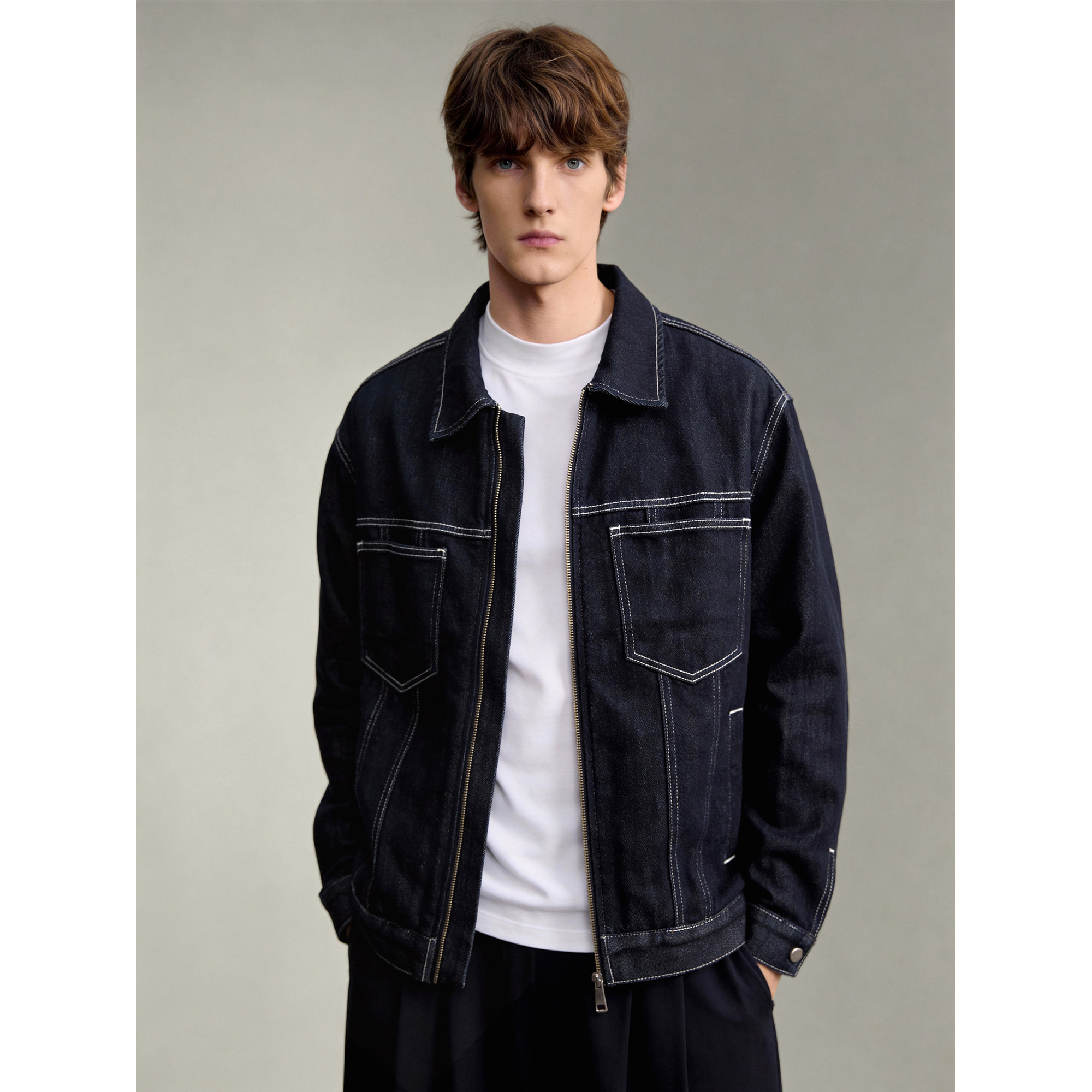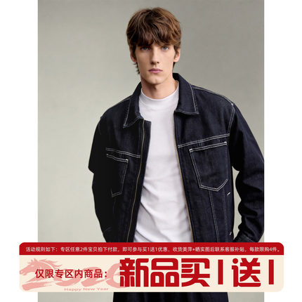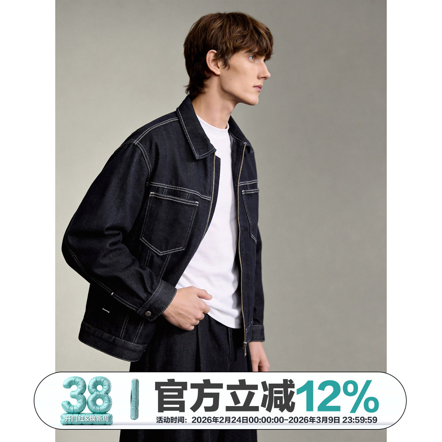 LUUD 原色水洗丹宁牛仔外套男春季莱赛尔棉混纺异色明线翻领夹克