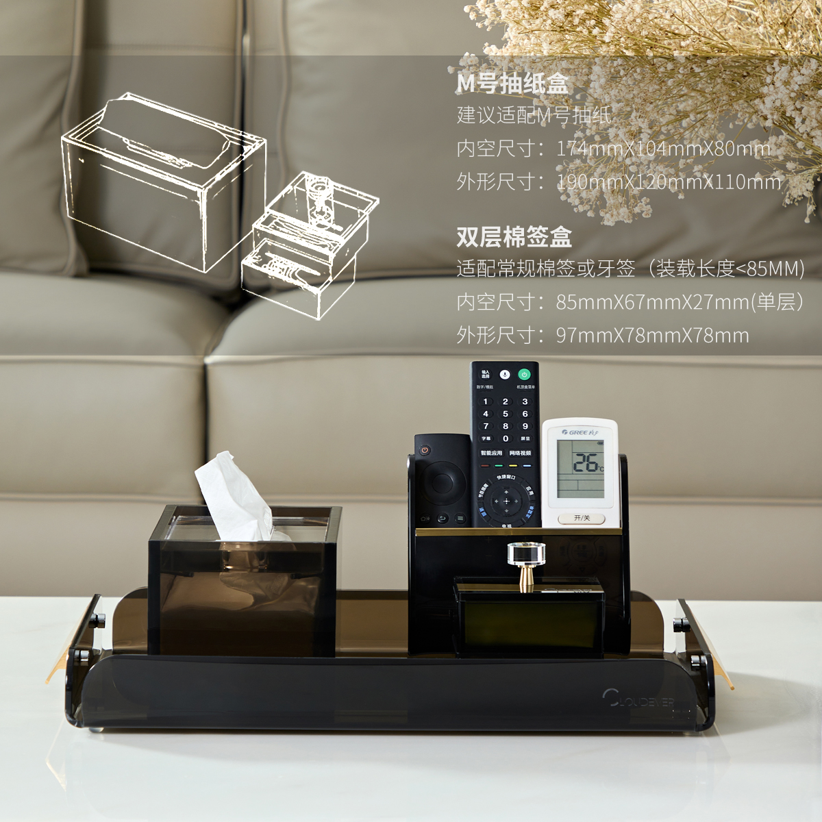 简约抽纸盒遥控器高颜值整体收纳
