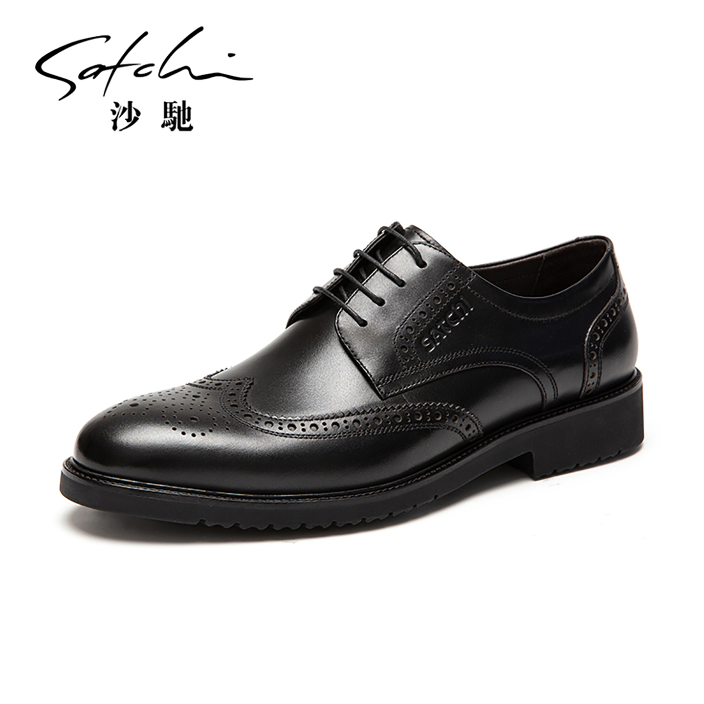 沙驰布洛克高档真皮皮鞋