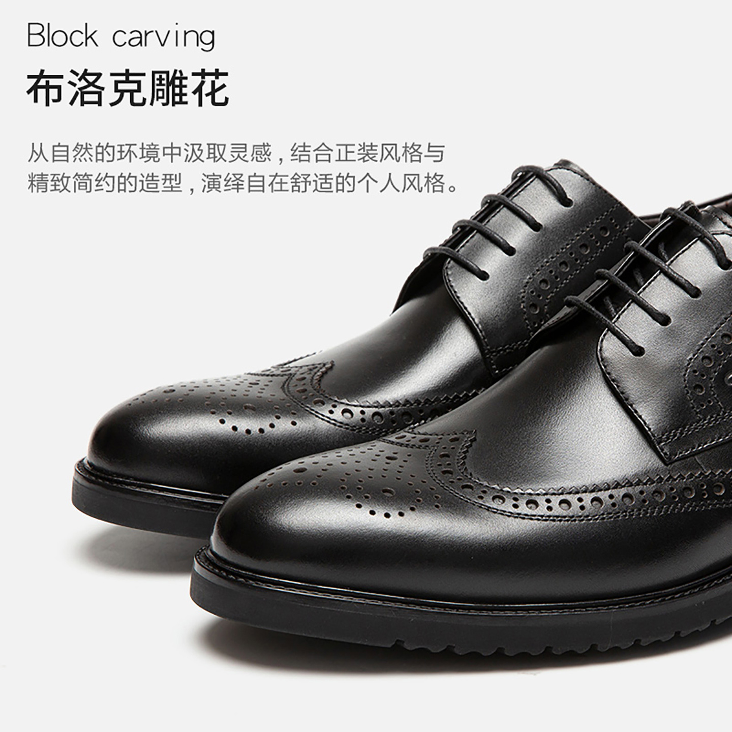 沙驰男鞋旗舰店透气复古布洛克皮鞋商务德比正装皮鞋青年休闲雕花