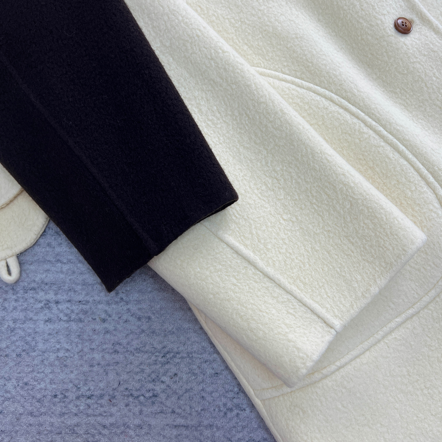 澳毛+山羊绒~双面羊绒带围巾单排扣中长款毛呢外套女宽松显瘦大衣