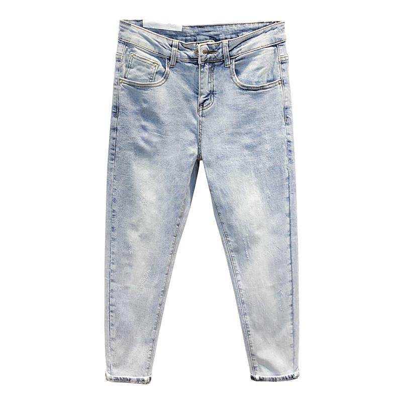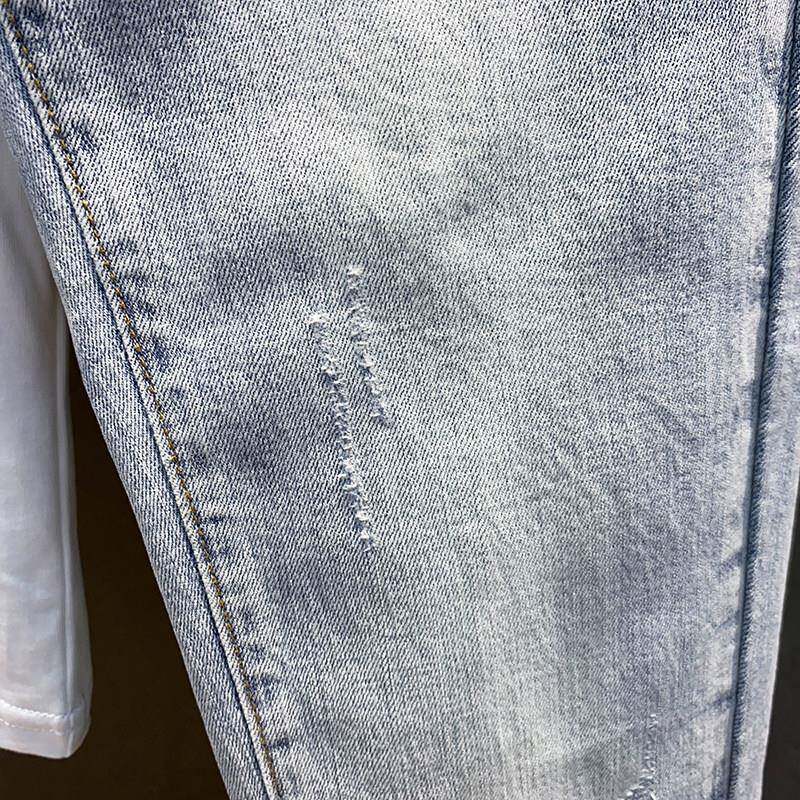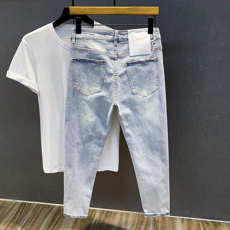 春夏夏季薄款浅蓝色九分牛仔裤男潮牌帅气百搭修身小脚9分裤0226d