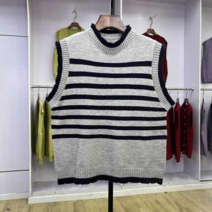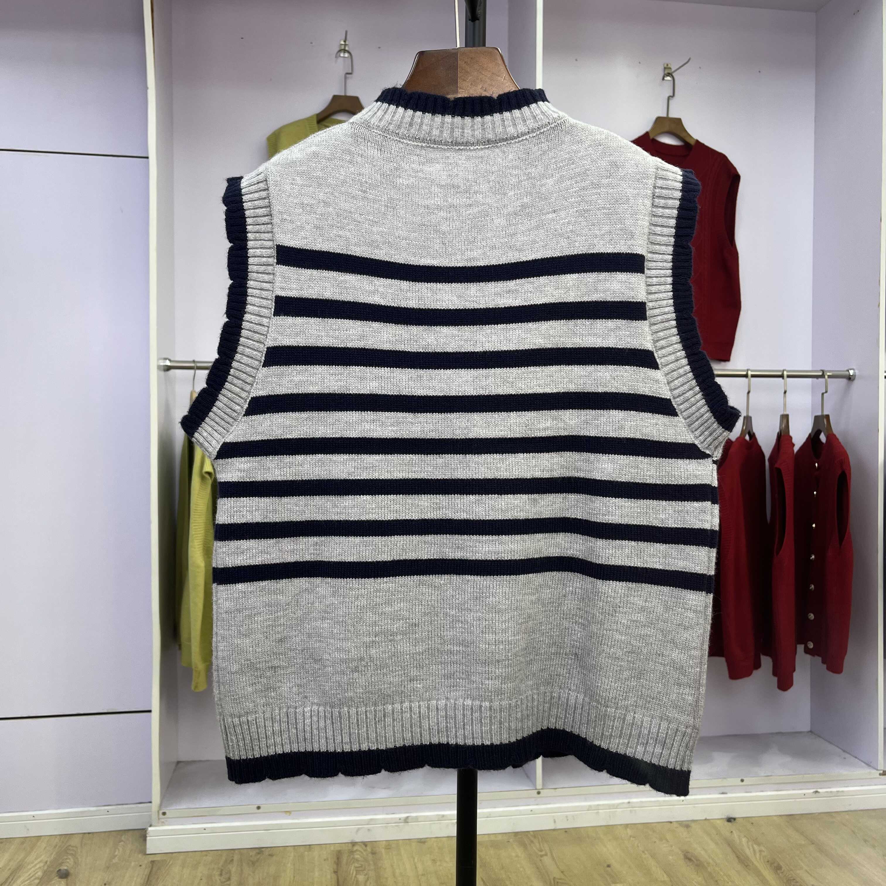 782条纹圆领套头毛衣针织马甲女2024春新款韩版显瘦无袖马甲背心