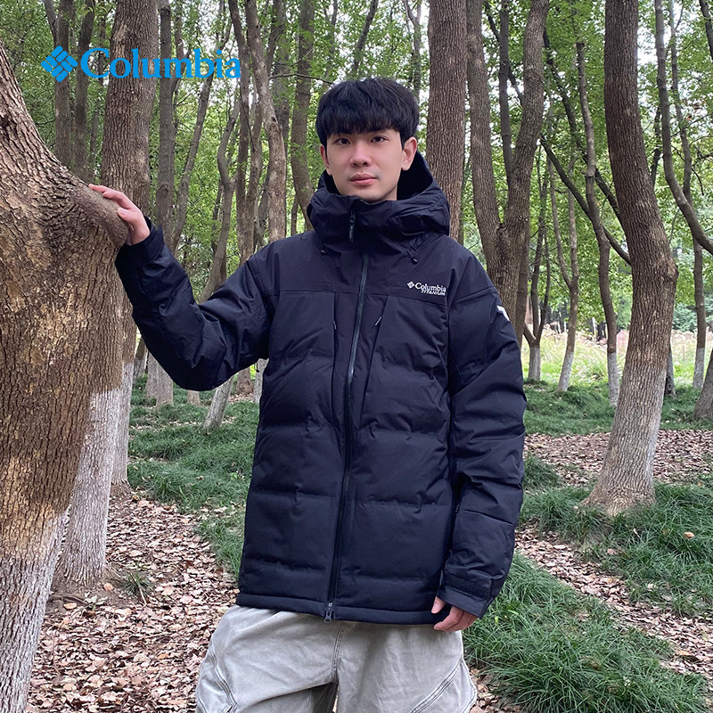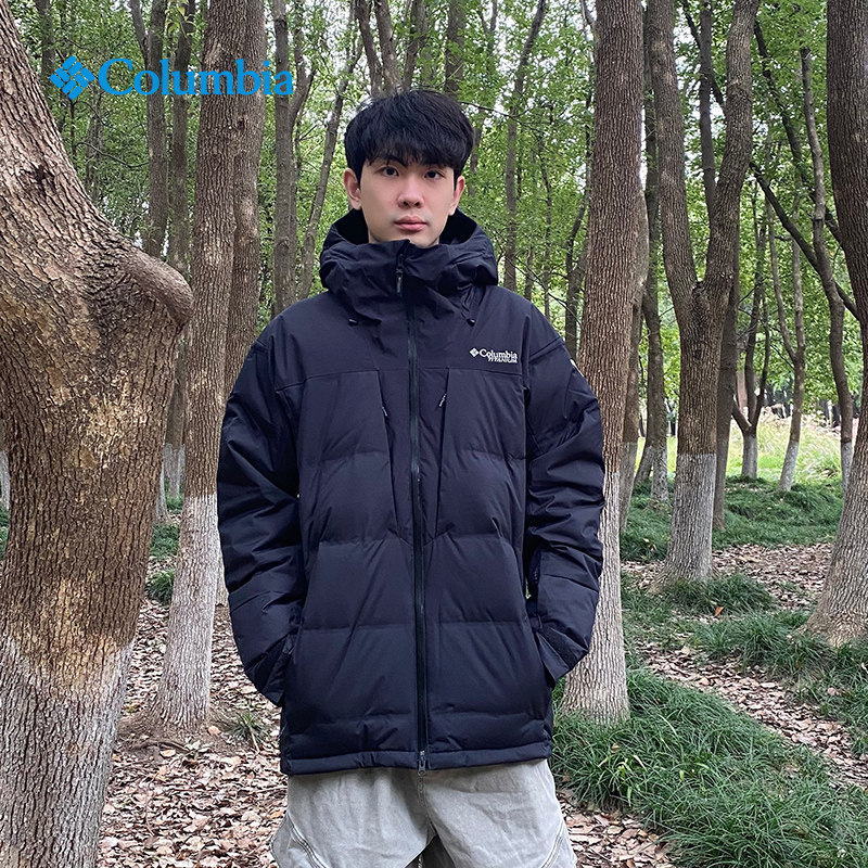 Columbia哥伦比亚25秋冬新款男户外钛金系列金点连帽羽绒服WE3084