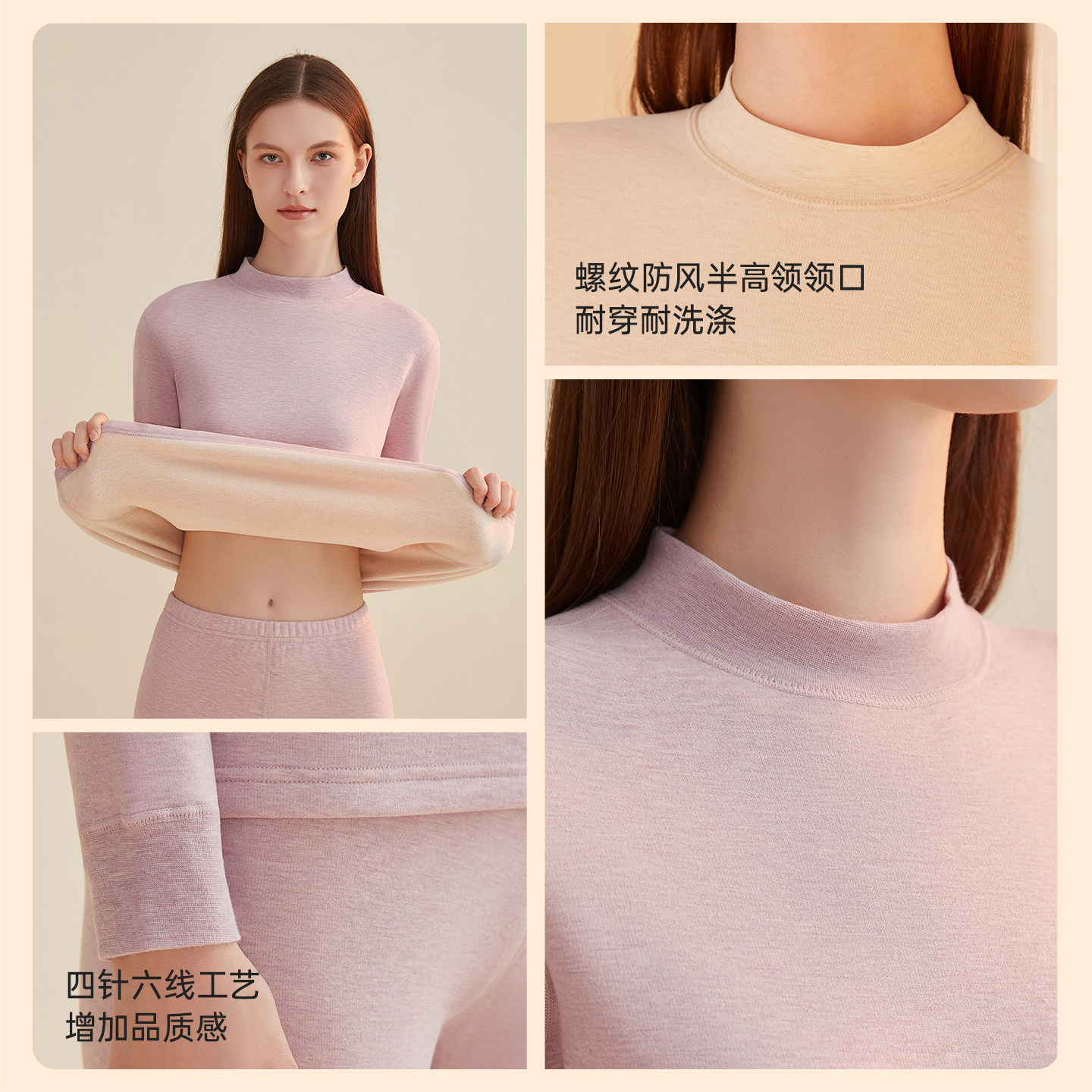 顶瓜瓜三层彩棉拉绒保暖内衣男女士加绒加厚半高领防风秋衣秋裤套