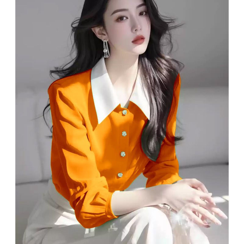 法式雪纺衫2025春夏时尚百搭衬衫气质新款上衣女高级感拼色七分袖