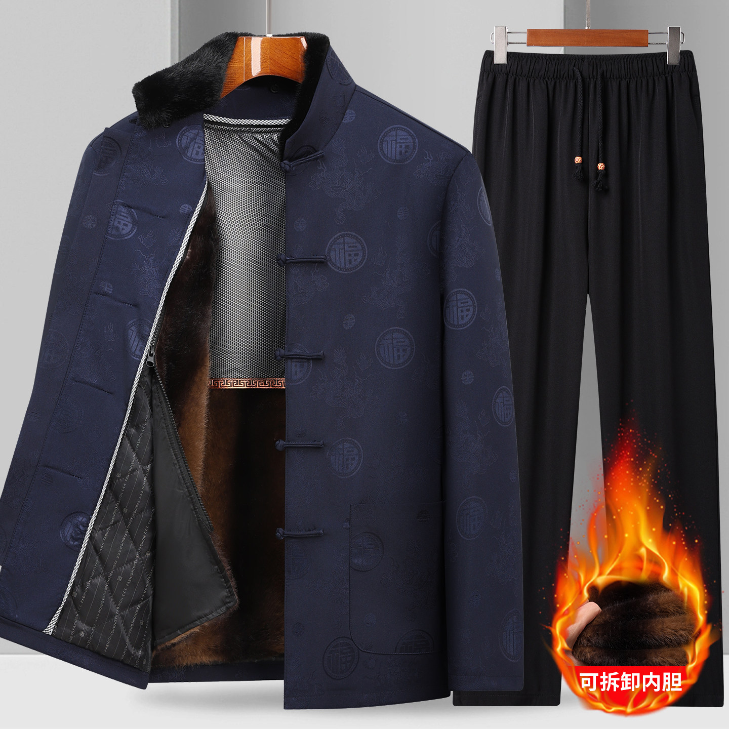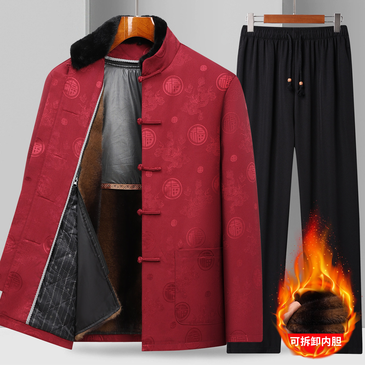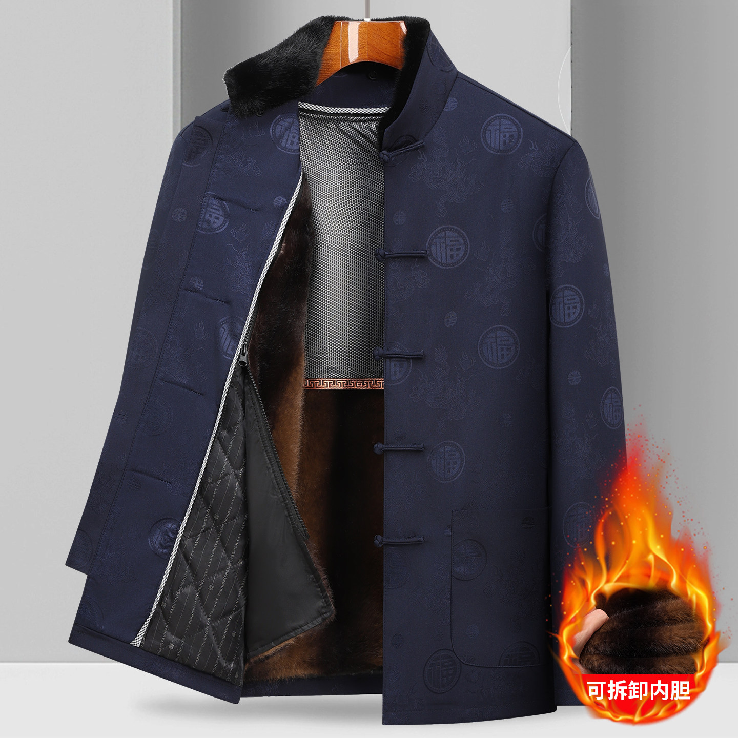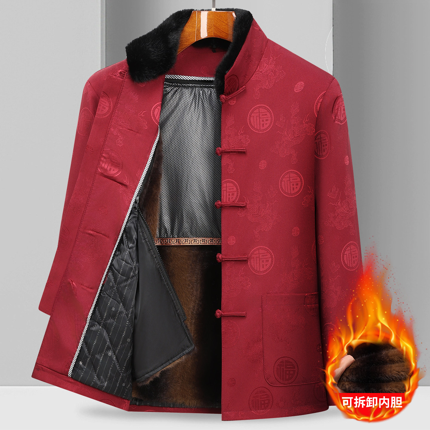 情侣唐装男可脱卸棉袄爷爷奶奶大寿加绒外套爸爸冬装老人生日衣服