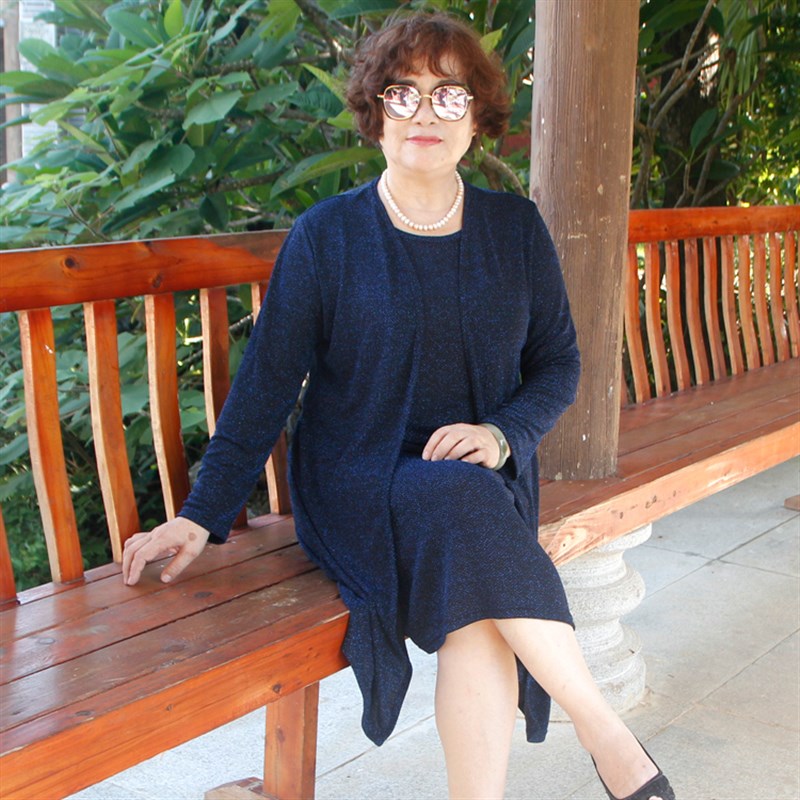 中老年女装春装中长款长袖连衣裙中年妈妈装假两件套大码秋装裙子