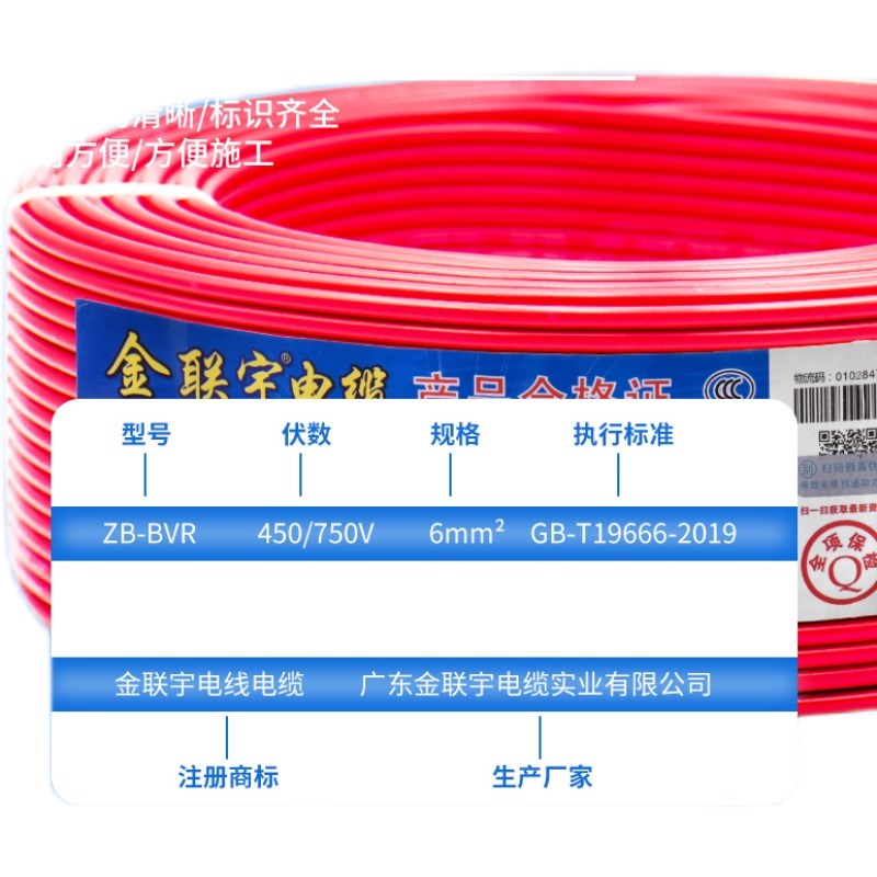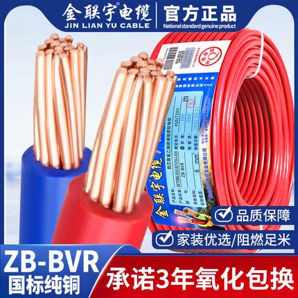 金联宇国标纯铜阻燃BVR1 1.5 2.5 4 6平方单芯多股铜芯家装软电线