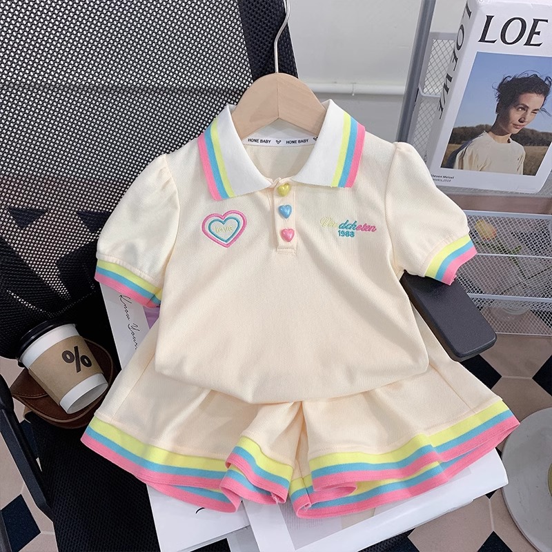 女童套装夏装2025新款儿童洋气短袖polo衫宝宝时髦短裤两件套夏季