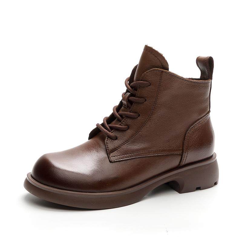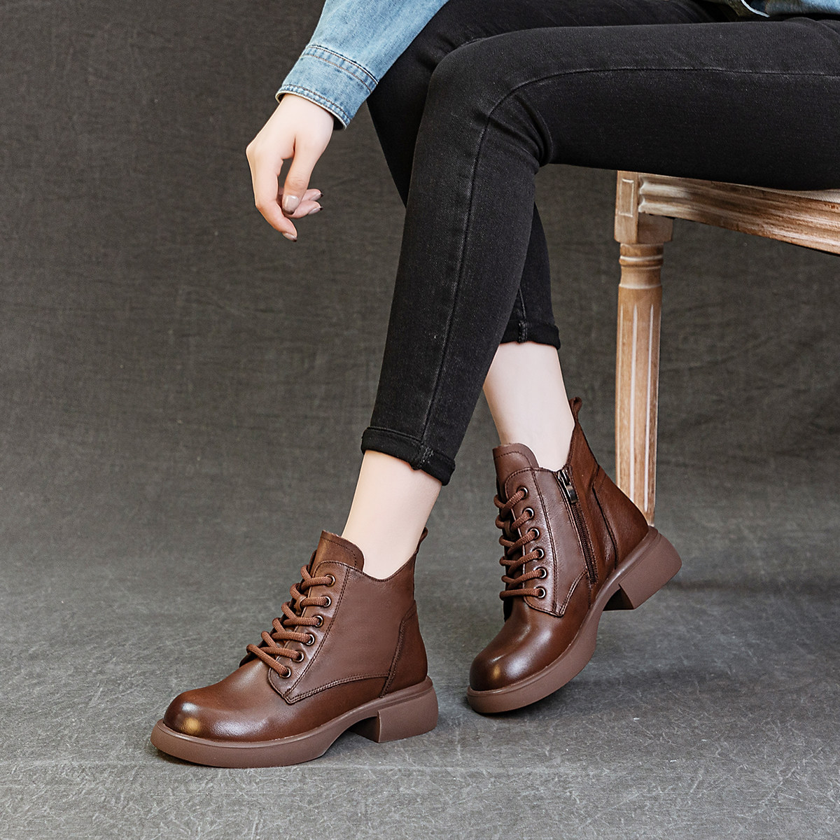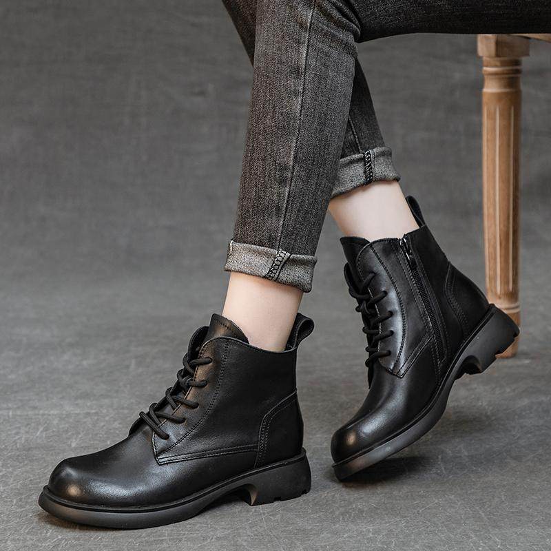 特价清仓头层牛皮女鞋英伦复古休闲小短筒马丁靴粗跟软底单里皮靴