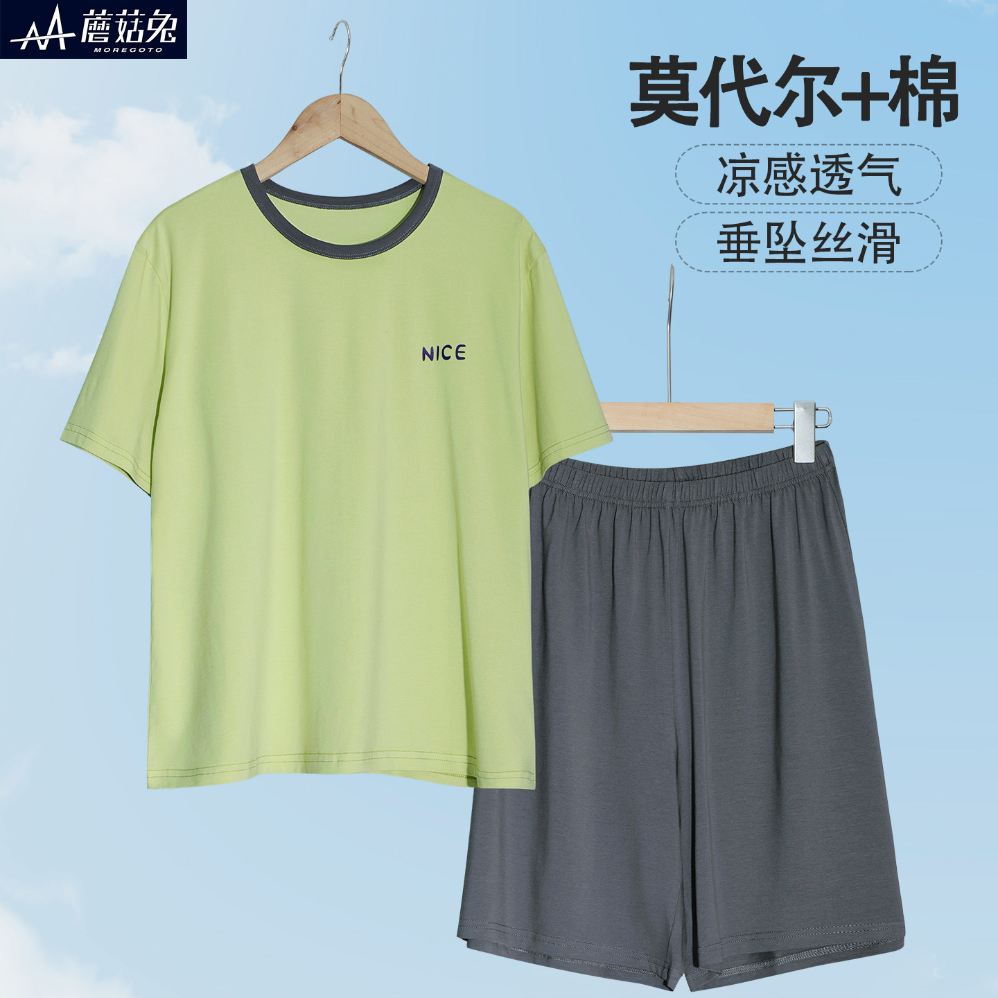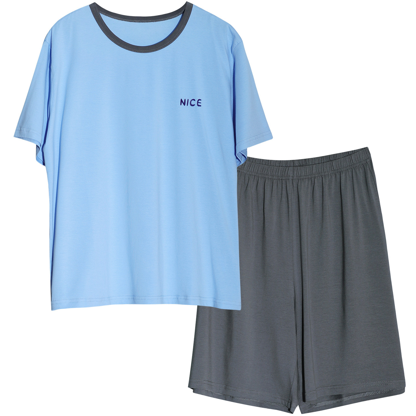 胖男童睡衣凉爽莫代尔中大童家居服加肥加大夏薄款中袖宽松胖男孩