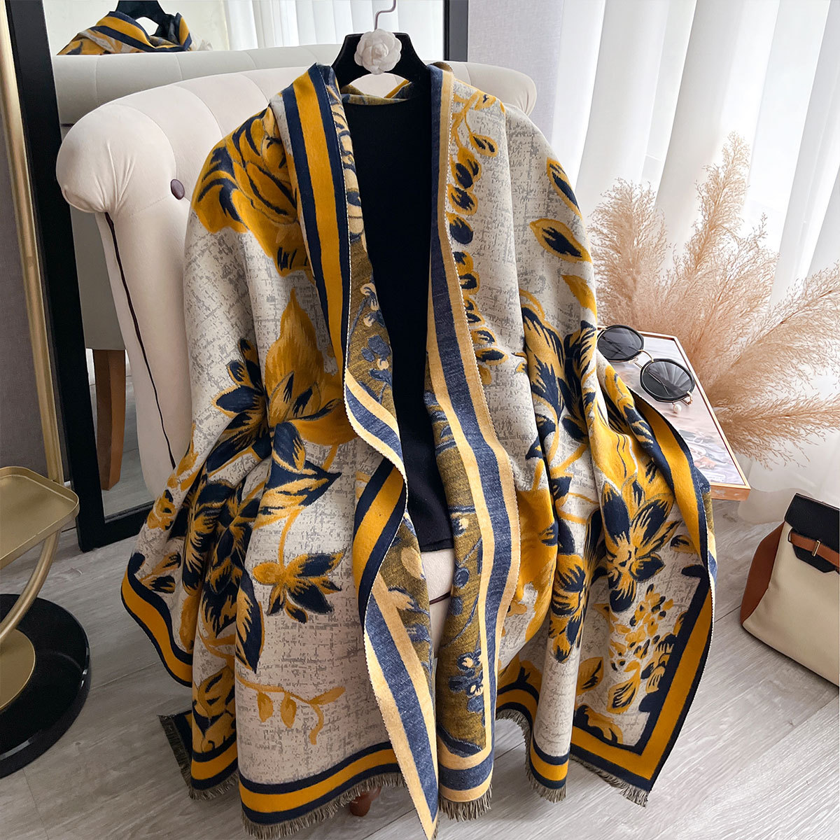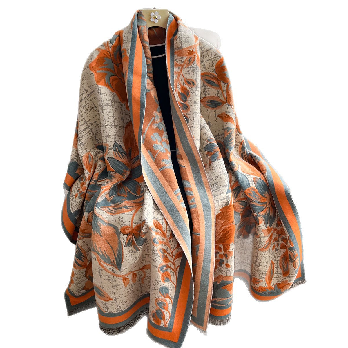 韩版新款印花时尚仿羊绒围巾女冬季百搭学生加厚御寒围脖两用披肩
