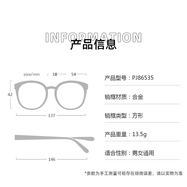 Prsr帕莎2022新款眼镜框男女潮半框商务眉毛框近视眼镜架PJ86535