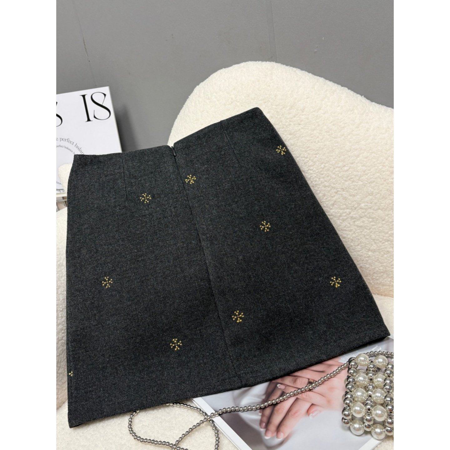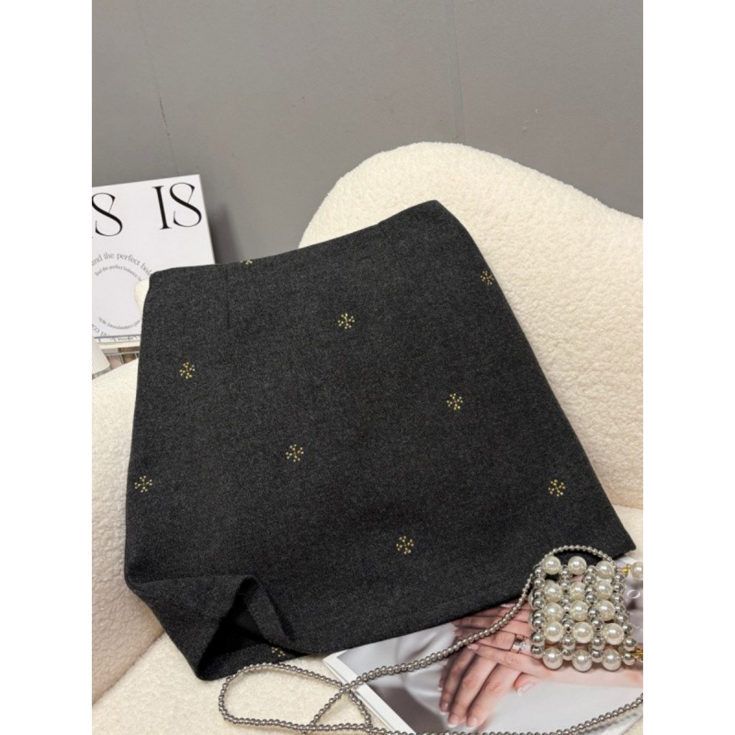 微胖mm韩式重工深灰色半身裙女秋冬新款高腰复古百搭呢子A字短裙