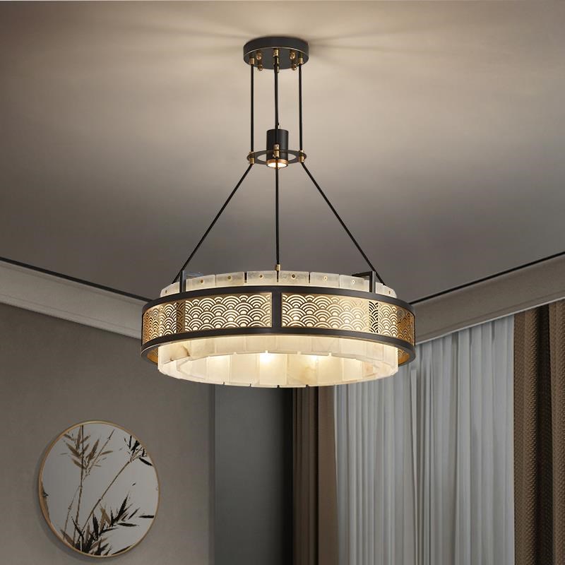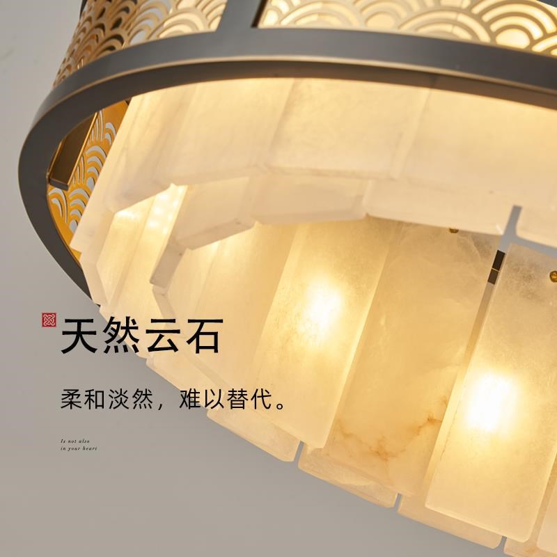 新中式全铜云石吊灯n客厅灯别墅复式楼卧室餐厅灯复古大气茶室灯