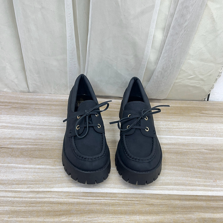 外贸原单厚底粗跟系带乐福鞋简约时尚新款圆头单鞋休闲时尚百搭