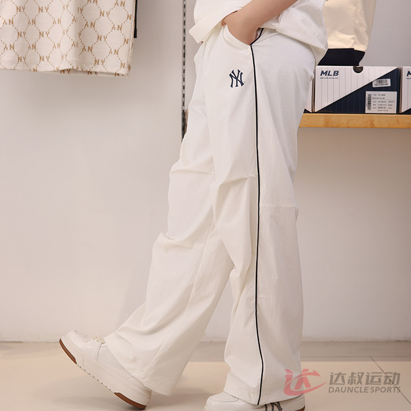 25新款MLB情侣长裤男女NY小标印花侧边线梭织直筒运动裤3AWPV0253