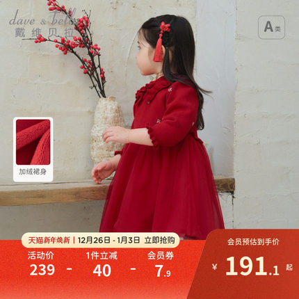 戴维贝拉女童毛衣连衣裙冬装儿童加绒针织裙宝宝国风新年裙子童装