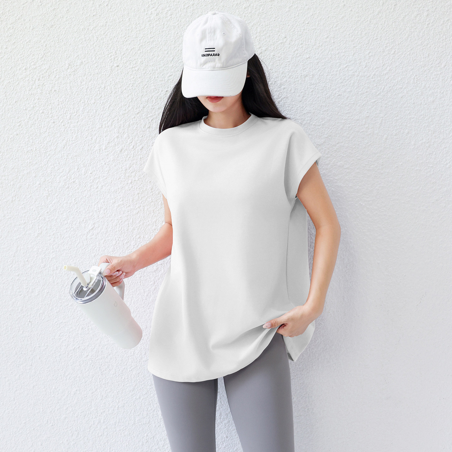 九麦一品欧货定制纯色运动T恤女无袖瑜伽服短袖夏季宽松健身上衣