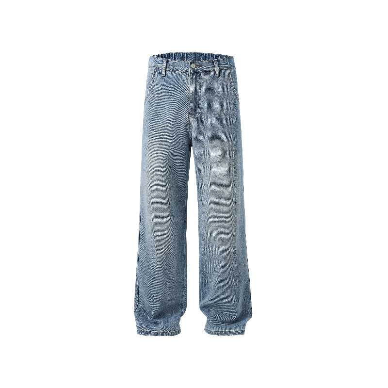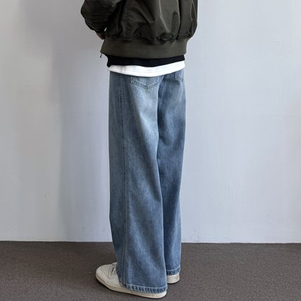 水洗做旧复古宽松直筒牛仔裤