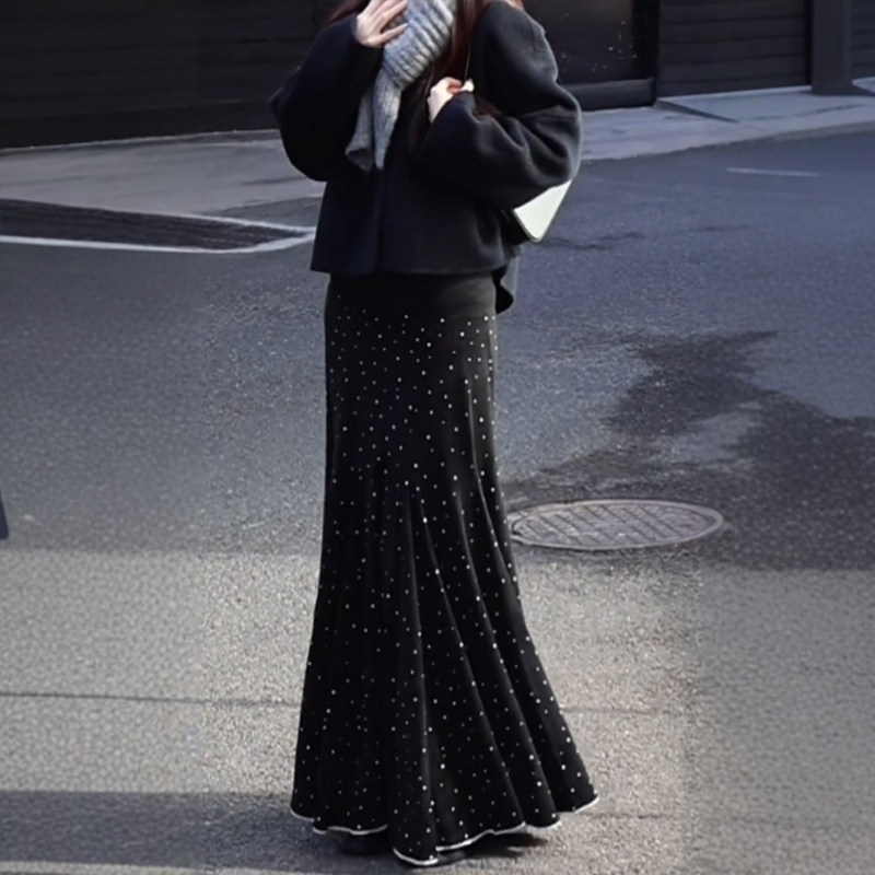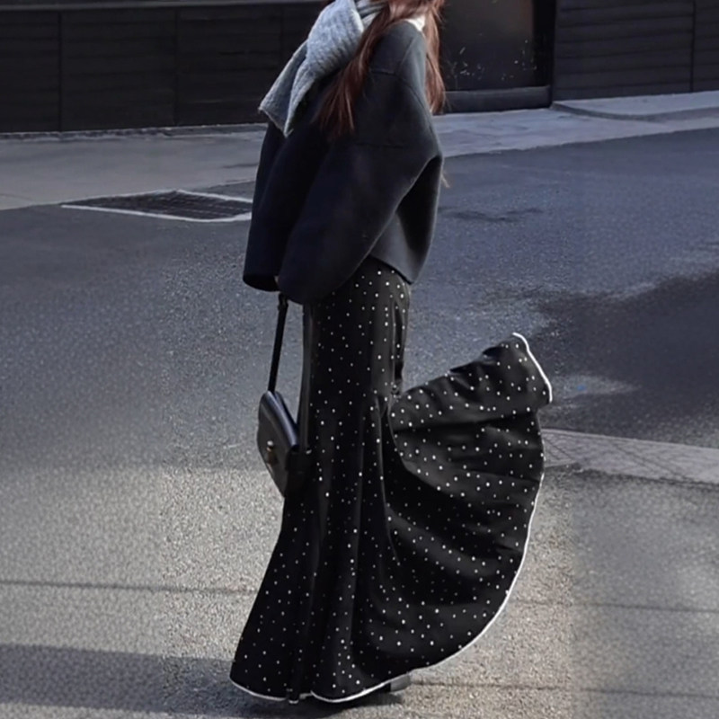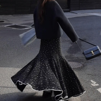 超好看冬装半身裙黑色波点鱼尾大摆长裙大码女新款梨形伯克利裙子