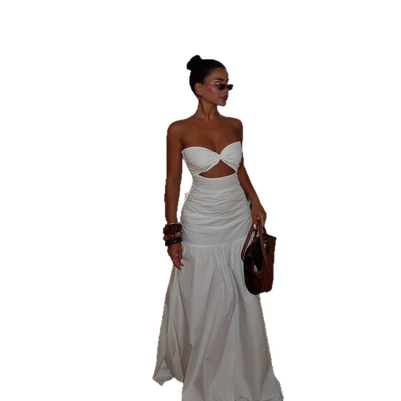 夏季欧美沙滩风性感辣妹镂空收腰长款抹胸连衣裙高腰通勤风