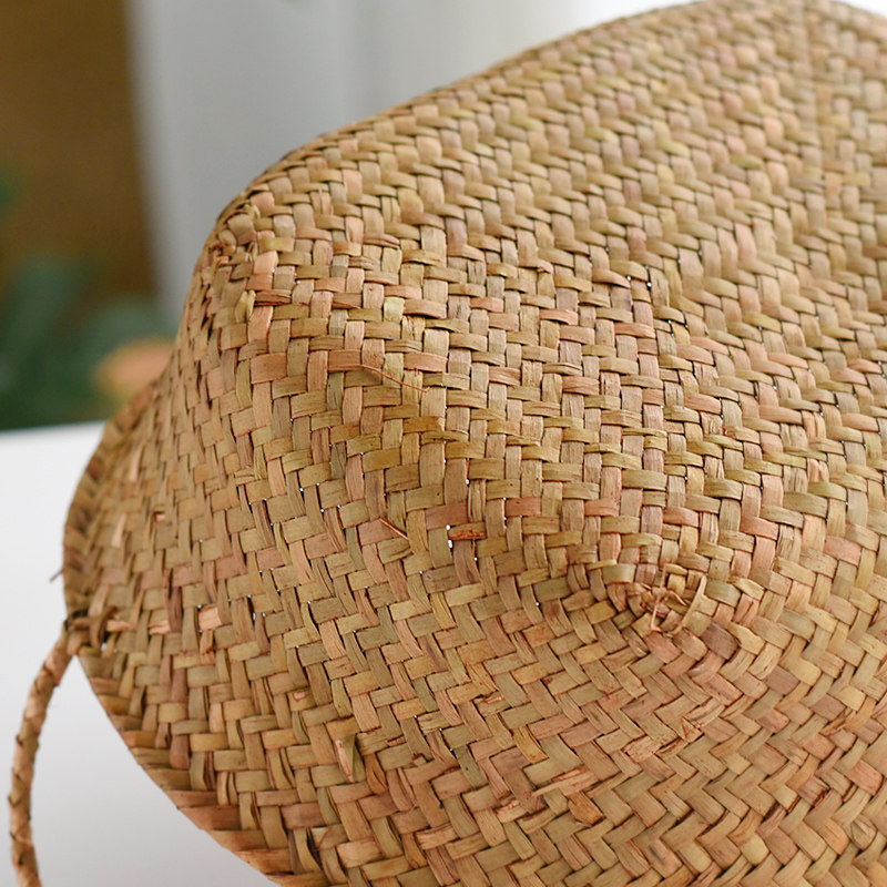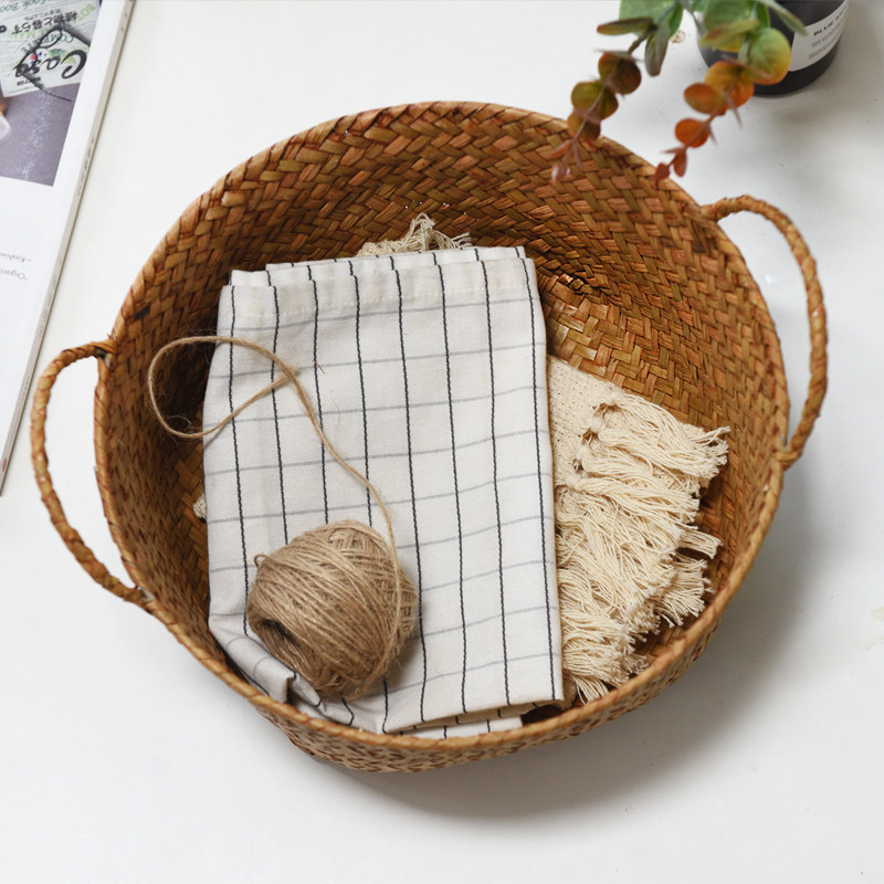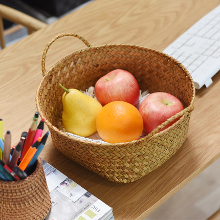 手工草编水果收纳篮桌