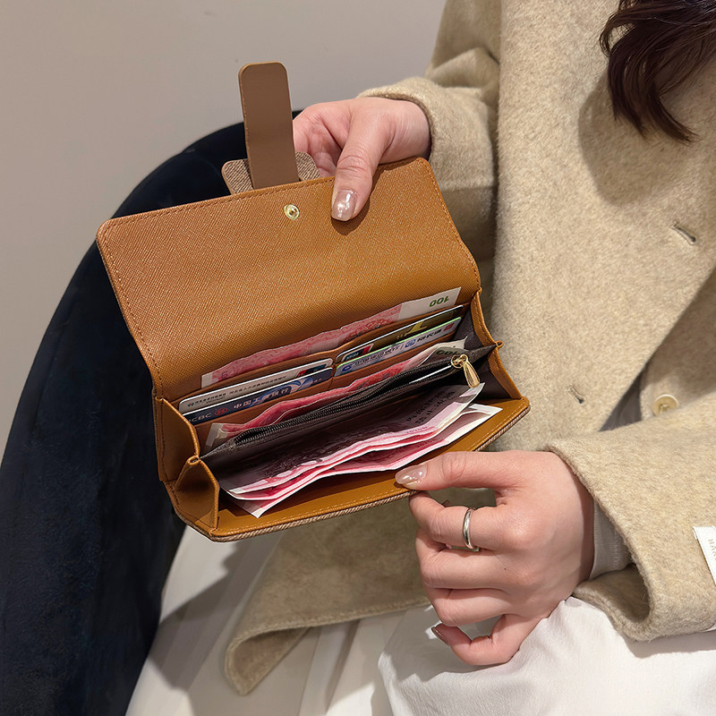高级感小清新女士钱包女长款搭扣手拿包大容量多卡位可放手机手包