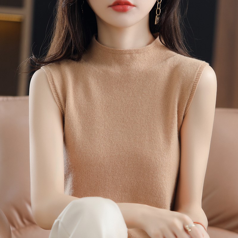 半高领无袖背心女显瘦内搭针织衫秋季新款洋气吊带套头毛衣打底衫