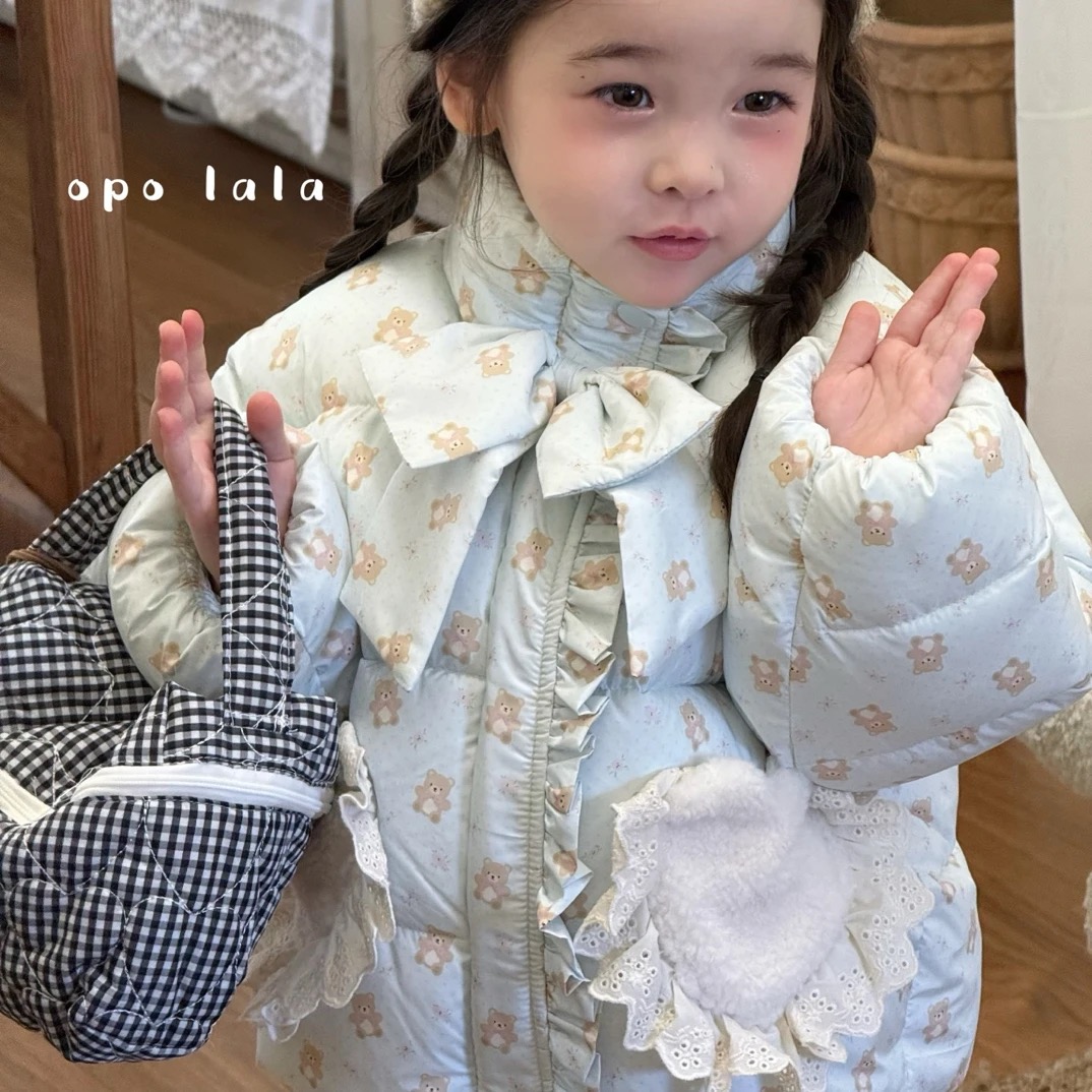 Opolala 25冬 女童蓝色碎花棉外套7076 蓝色菱格棉裤7071