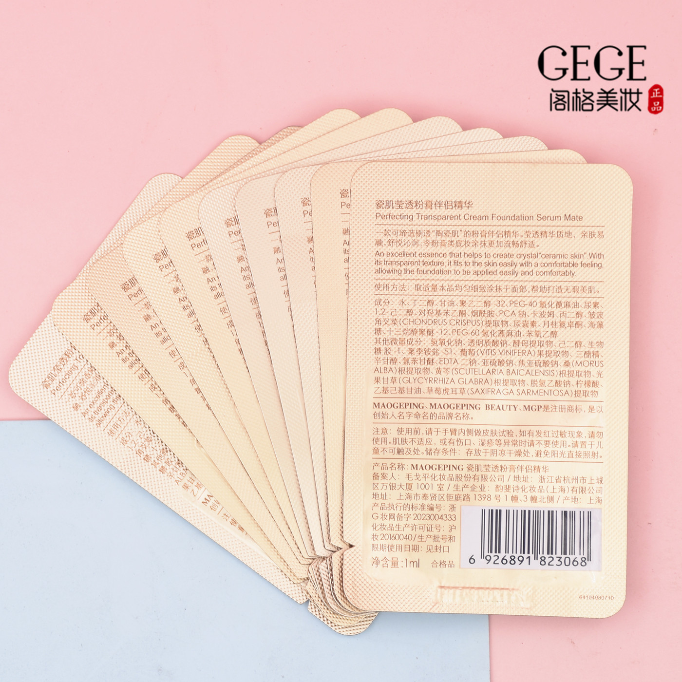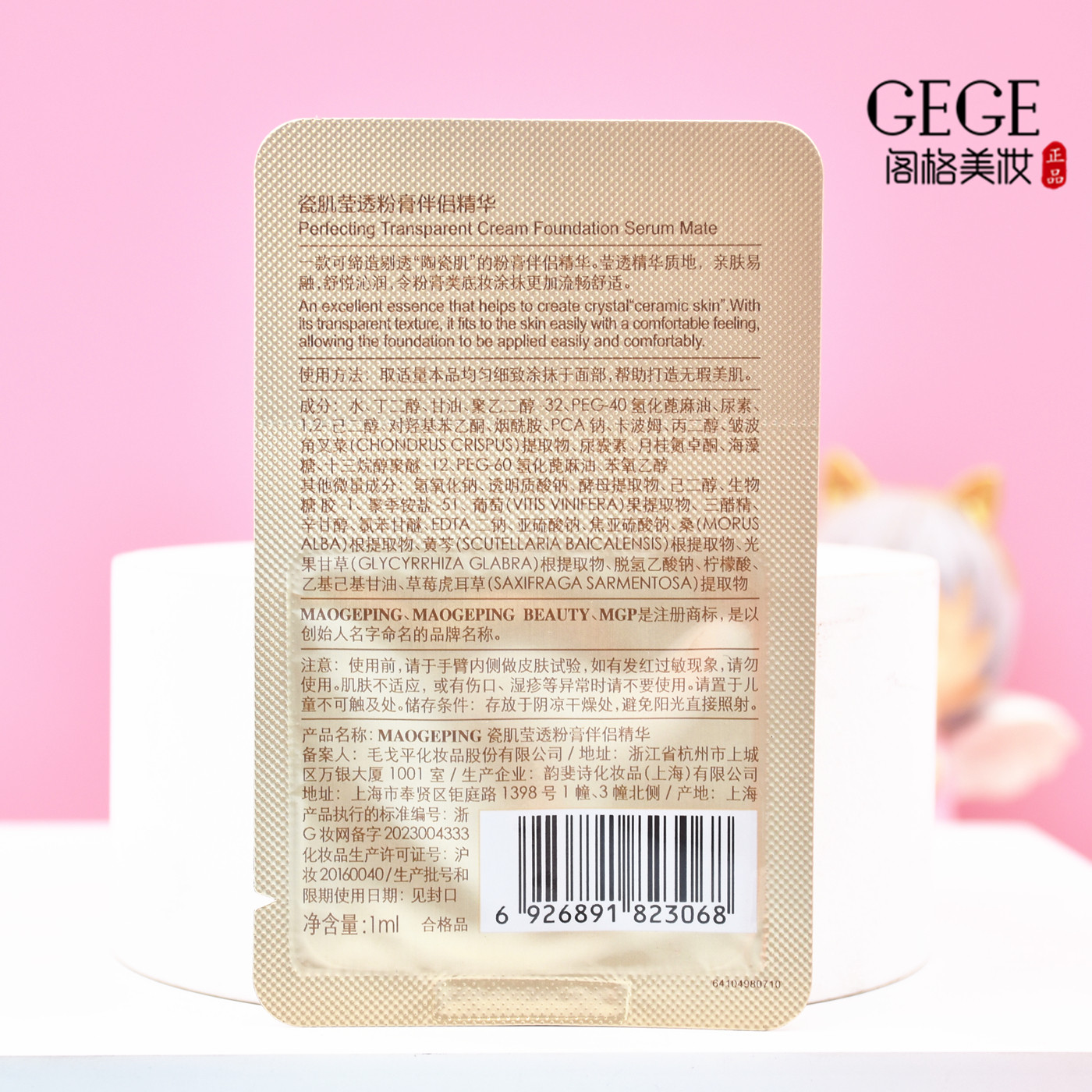 毛戈平瓷肌莹透粉膏伴侣妆前打底滋润透亮面部精华1ml小样试用装