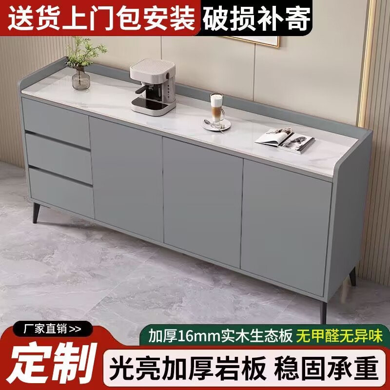 全实木餐边柜岩板台面轻奢高端现代简约新中式客厅厨房茶水碗橱柜