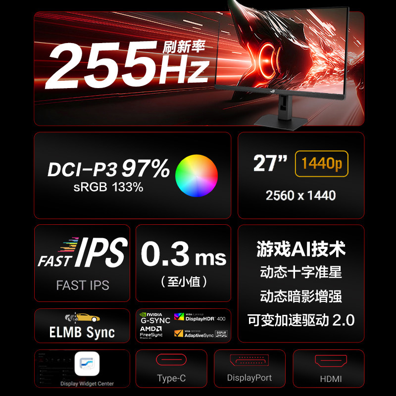ROG 绝杀27二代 2K 255Hz 台式电脑27英寸华硕电竞显示器FAST IPS屏幕高刷