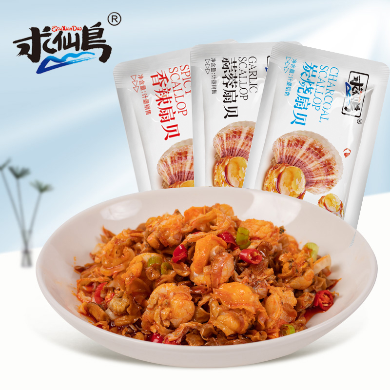 求仙岛蒜蓉炭烧烤扇贝肉即食香辣麻辣扇贝海鲜小吃零食小包装250g