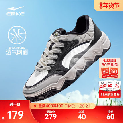 悦途鸿星尔克板鞋男休闲鞋低帮网面男鞋冬季新款透气舒适运动鞋子
