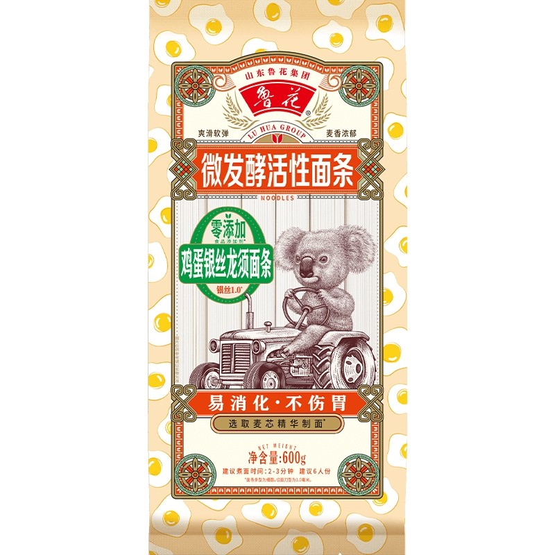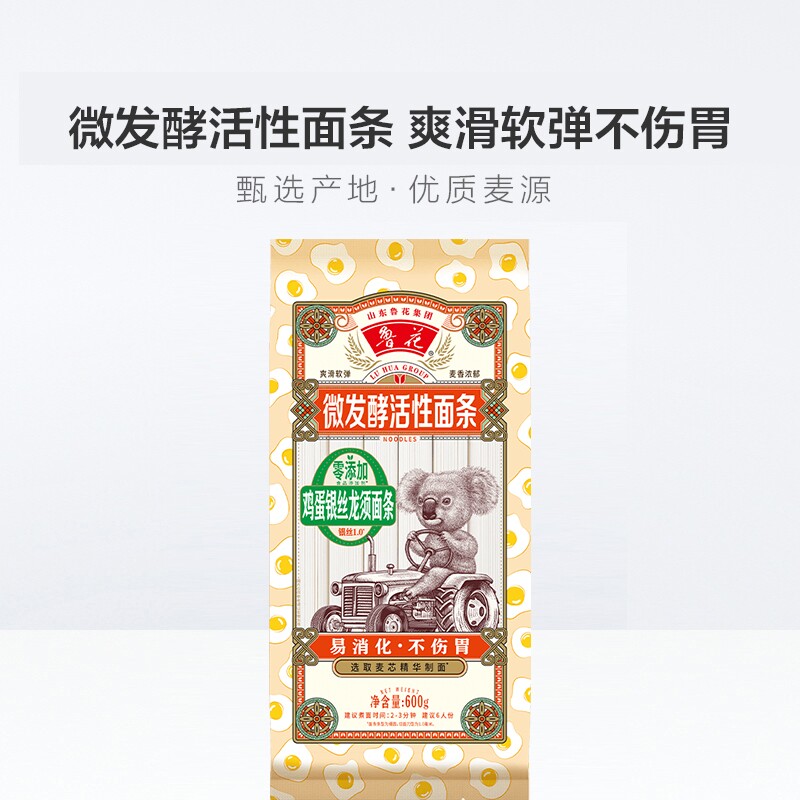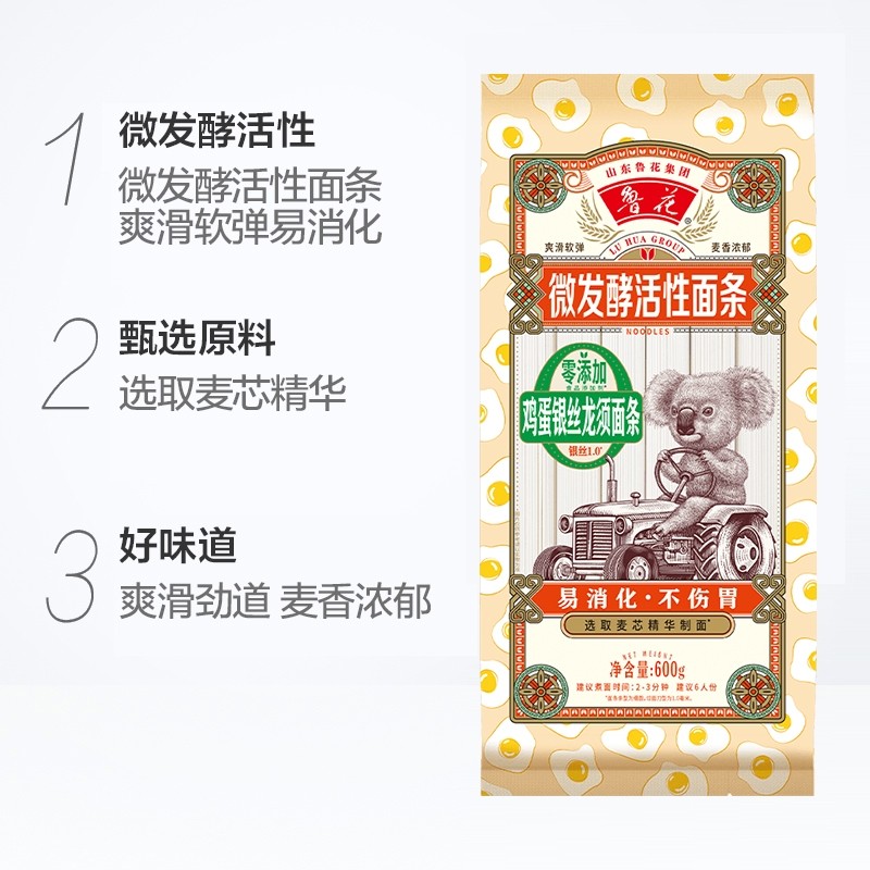 鲁花考拉系列鸡蛋银丝龙须面条600g*4 早餐速食拌面汤面鲜香