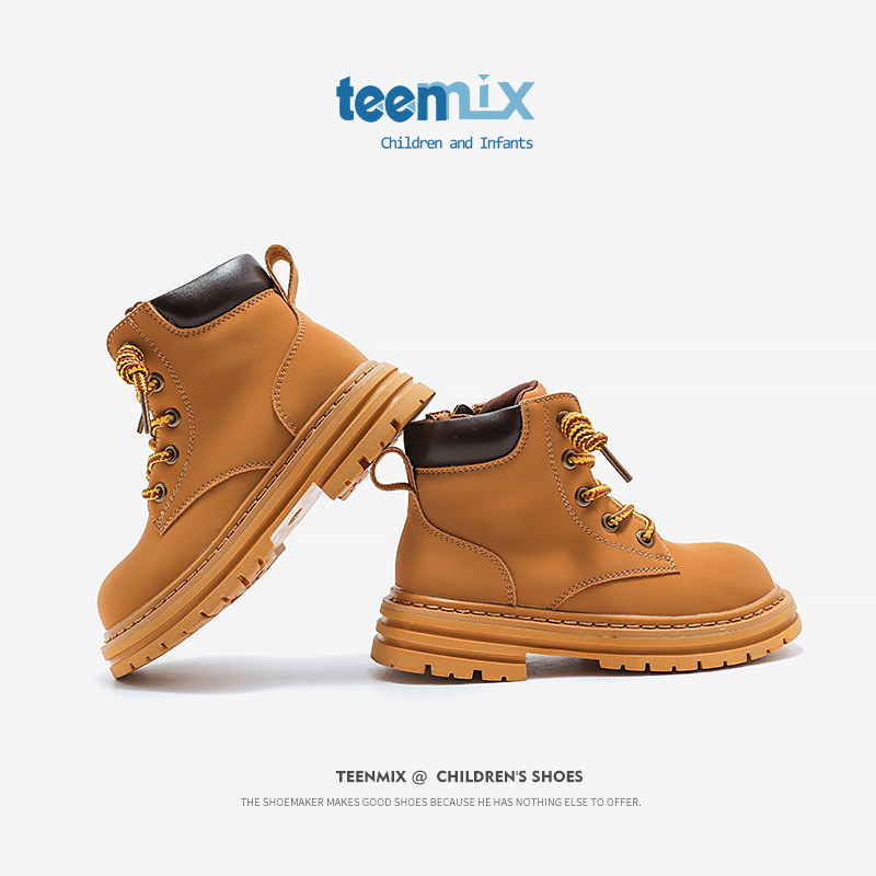 天美意儿童鞋女童马丁靴短靴子男童2026新款大黄靴秋冬加绒雪地靴