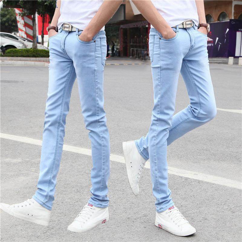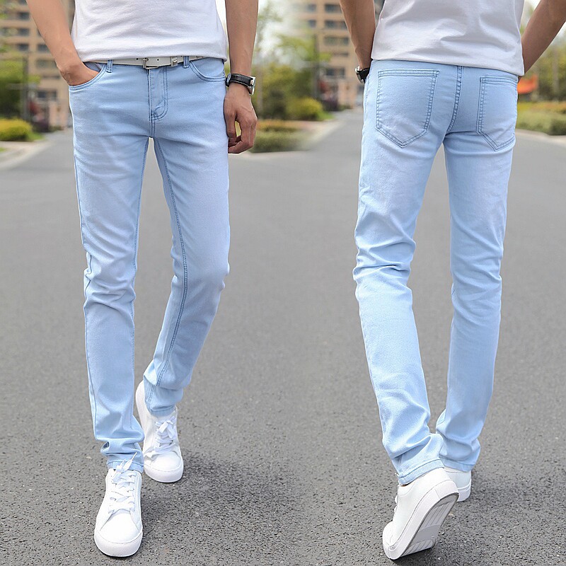 牛仔裤男修身小脚裤天蓝色百搭休闲上班工作裤弹力中腰青少年长裤