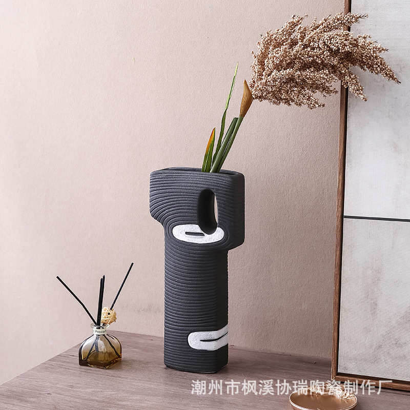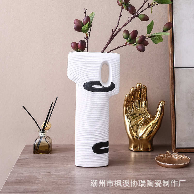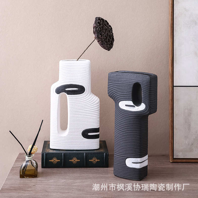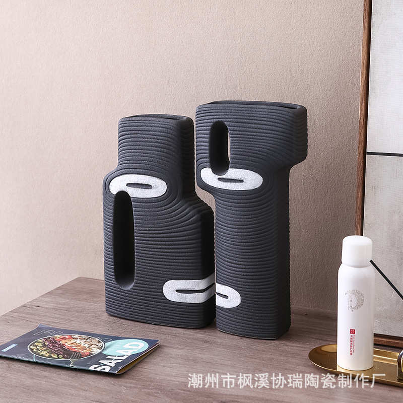 北欧风现代创意轻奢组合陶瓷花瓶黑白手绘样板间客厅家居软装摆件