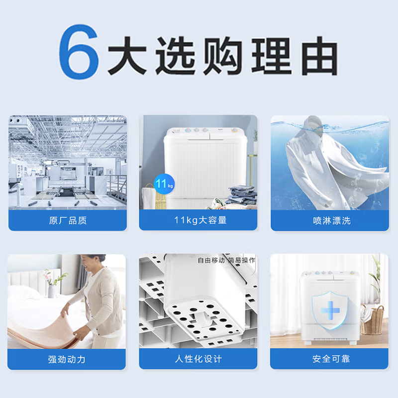 海尔洗衣机11公斤半自动家用双缸双桶大容量喷淋新款XPB110-118S