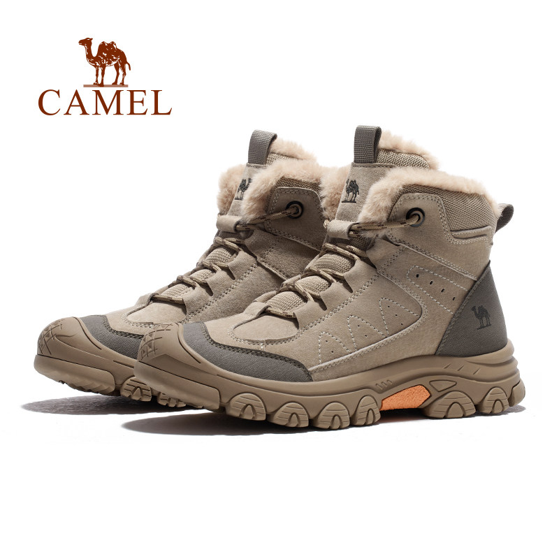 骆驼户外休闲鞋2025春季加绒保暖棉鞋防滑厚底马丁靴增高徒步男鞋