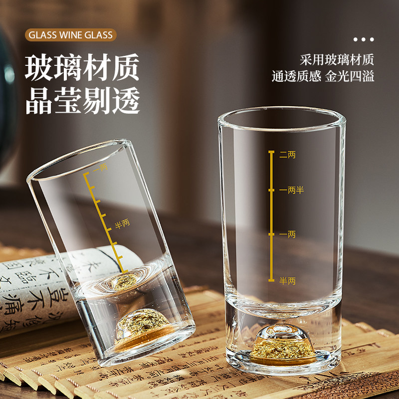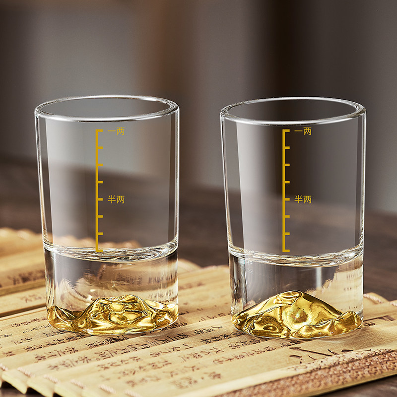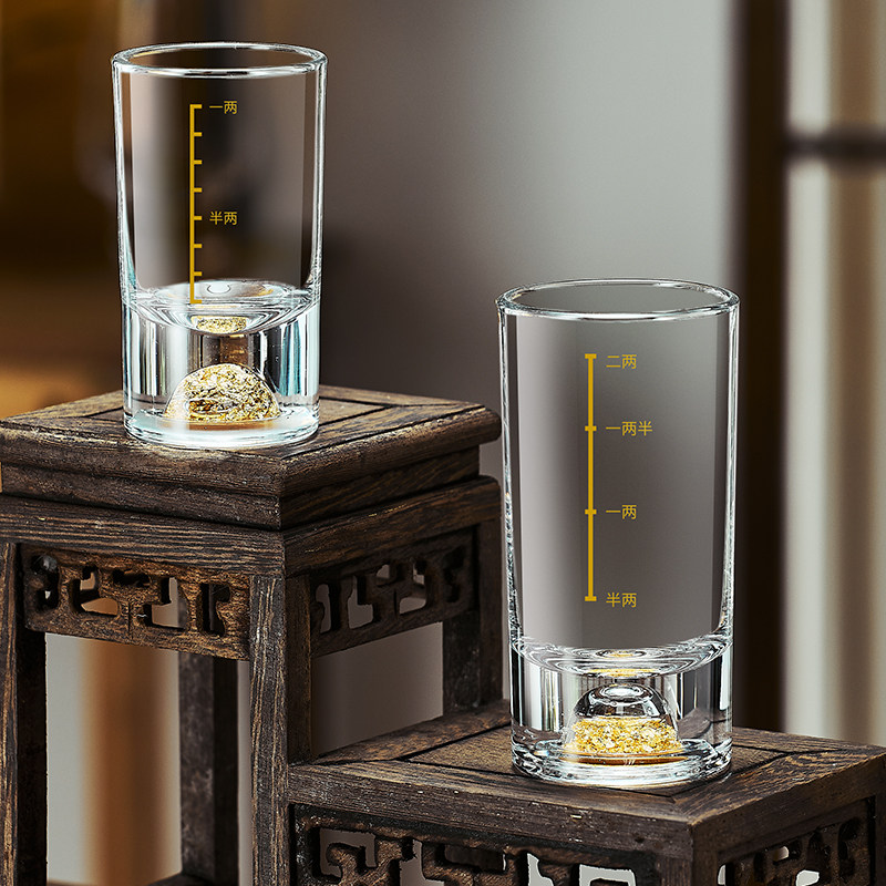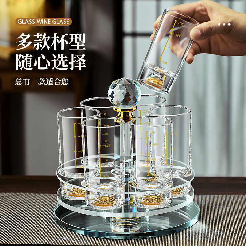 二两白酒杯轻奢高档黄金烈酒杯创意水晶酒具旋转套装中式品酒杯子