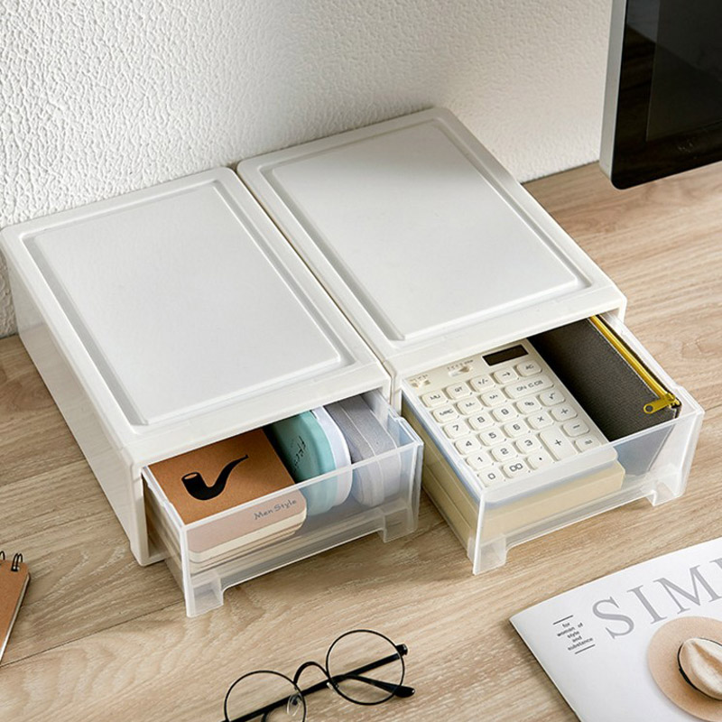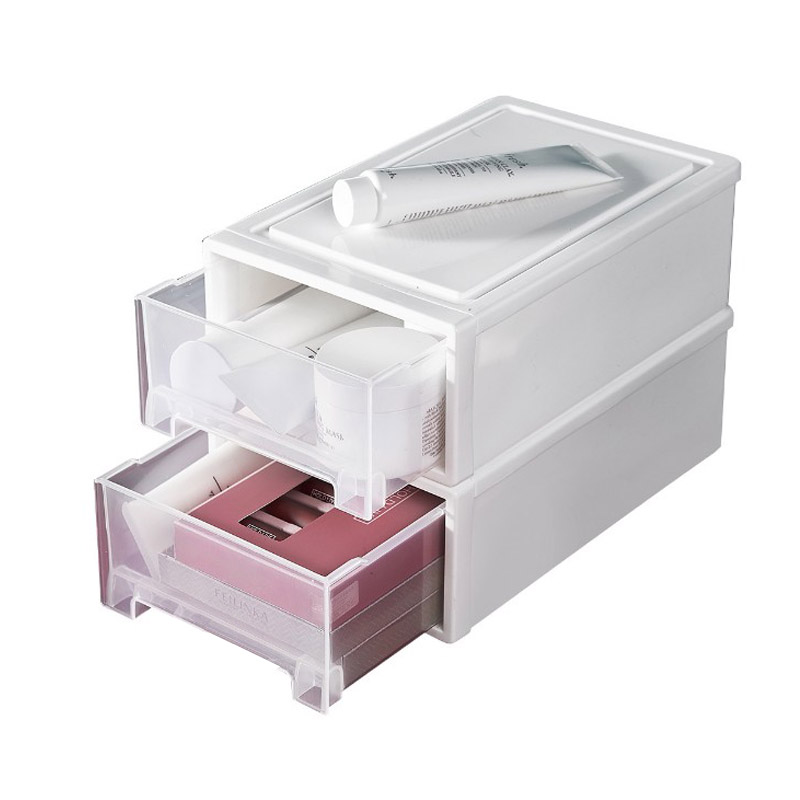 新款桌面收纳盒小号抽屉式可叠加塑料透明整理柜内衣内裤杂物收纳